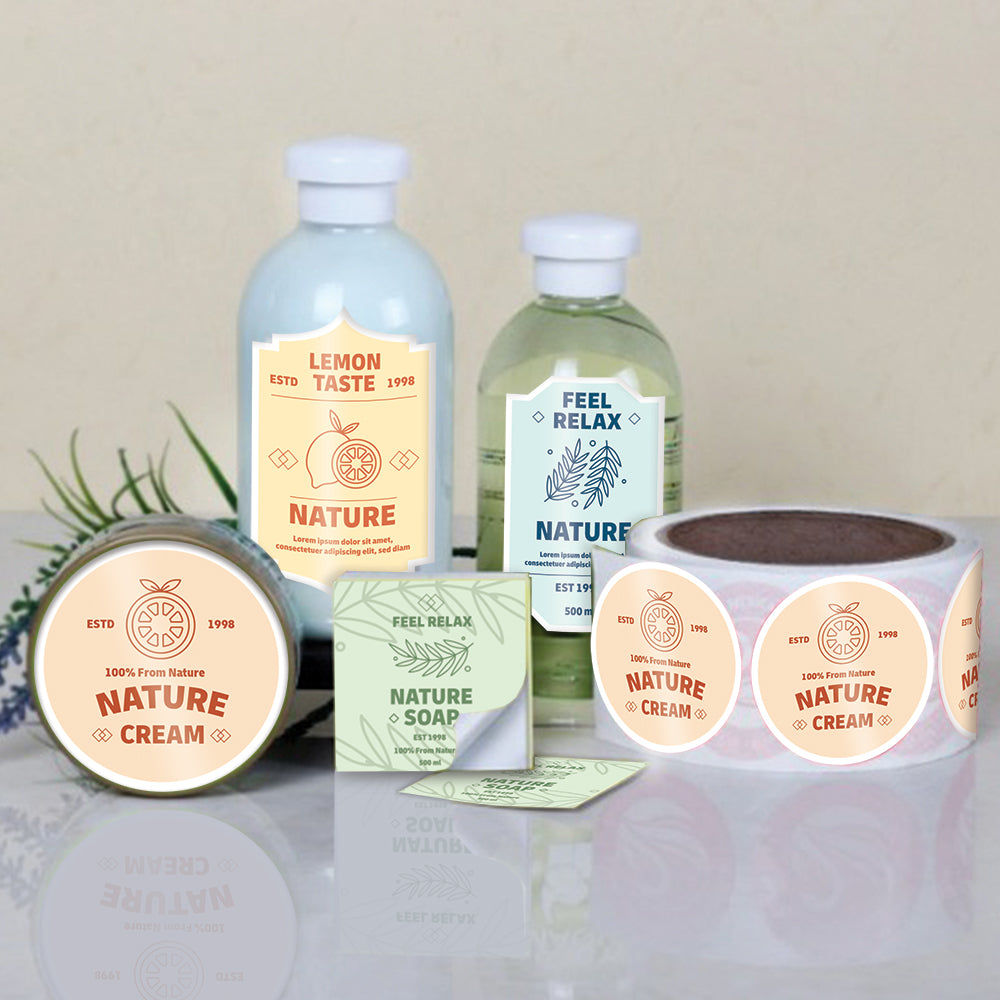 Custom die cut roll labels are a fast and easy way to brand your product. Apply to bottles, jars, boxes, packaging and more. Made from a durable material with a laminate that resists scratching, heat, water and sunlight.